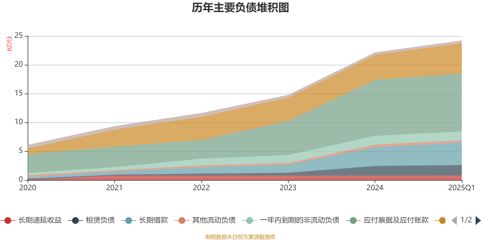 负债重大变化方面,截至2025年一季度末,公司短期借款较上年末增加22.18%,占公司总资产比重上升1.87个百分点;长期借款较上年末增加19.49%,占公司总资产比重上升1.18个百分点;应付票据及应付账款较上年末增加3.36%,占公司总资产比重下降0.6个百分点;其他流动负债较上年末减少10.53%,占公司总资产比重下降0.19个百分点。