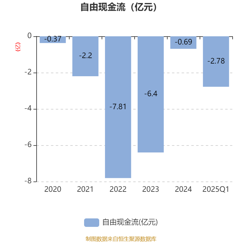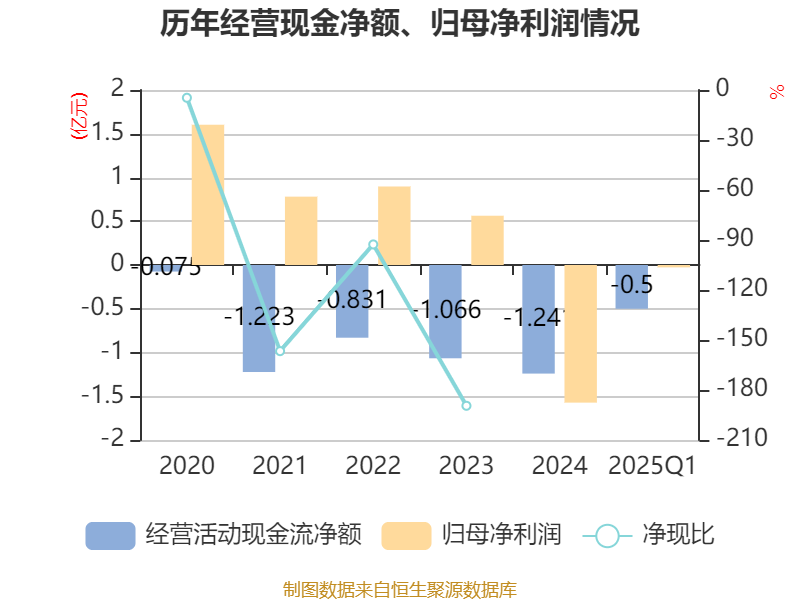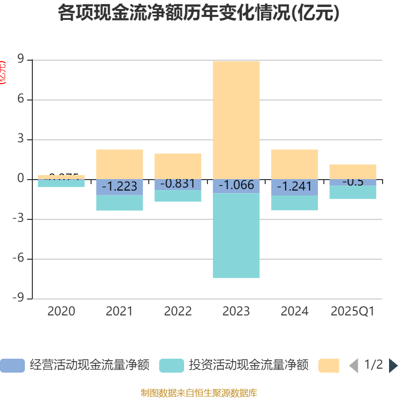 截至2025年一季度末,公司经营活动现金流净额为-4995.56万元,同比减少1.21亿元;筹资活动现金流净额1.1亿元,同比增加9106.04万元;投资活动现金流净额-9917.99万元,上年同期为2067.69万元。