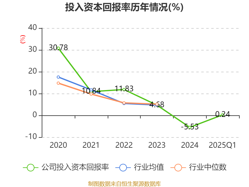 盈利能力方面, 2025年一季度公司加权平均净资产收益率为-0.19%,同比上升1.43个百分点。公司2025年第一季度投入资本回报率为0.24%,较上年同期上升1.11个百分点。