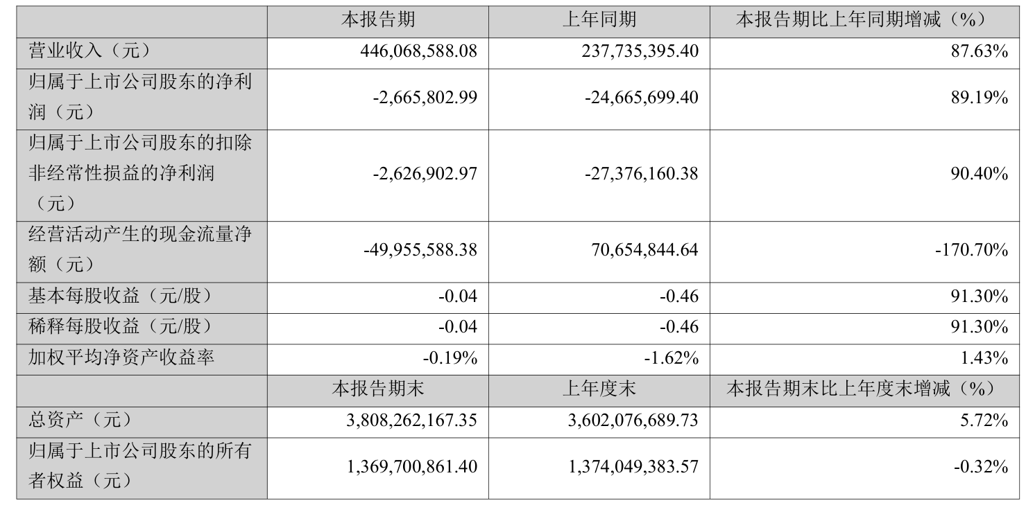 中证智能财讯飞沃科技(301232)4月25日披露2025年第一季度报告。公司实现营业总收入4.46亿元,同比增长87.63%;归母净利润亏损266.58万元,上年同期亏损2466.57万元;扣非净利润亏损262.69万元,上年同期亏损2737.62万元;经营活动产生的现金流量净额为-4995.56万元,上年同期为7065.48万元;报告期内,飞沃科技基本每股收益为-0.04元,加权平均净资产收益率为-0.19%。