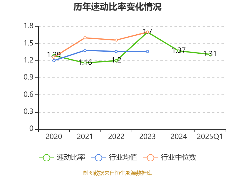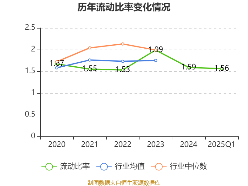 2025年第一季度,公司流动比率为1.56,速动比率为1.31。